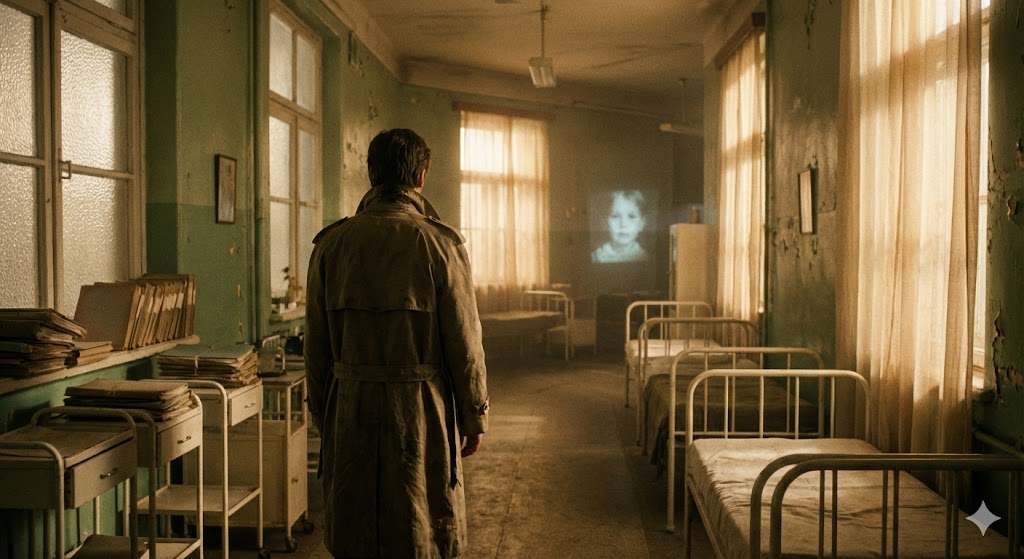 A lost patient, a swirling vortex of disorientation, drifts through a sterile hospital ward, ethereal gowns blurring into the pale walls. Double exposure of faded photographs layered onto the scene, nostalgic echoes of childhood bedrooms and sun-drenched meadows interwoven with medical instruments. Soft, cinematic lighting casts long, melancholic shadows, illuminating dust motes dancing in the air. The entire scene feels dreamlike and surreal, a poignant memory of a forgotten path.